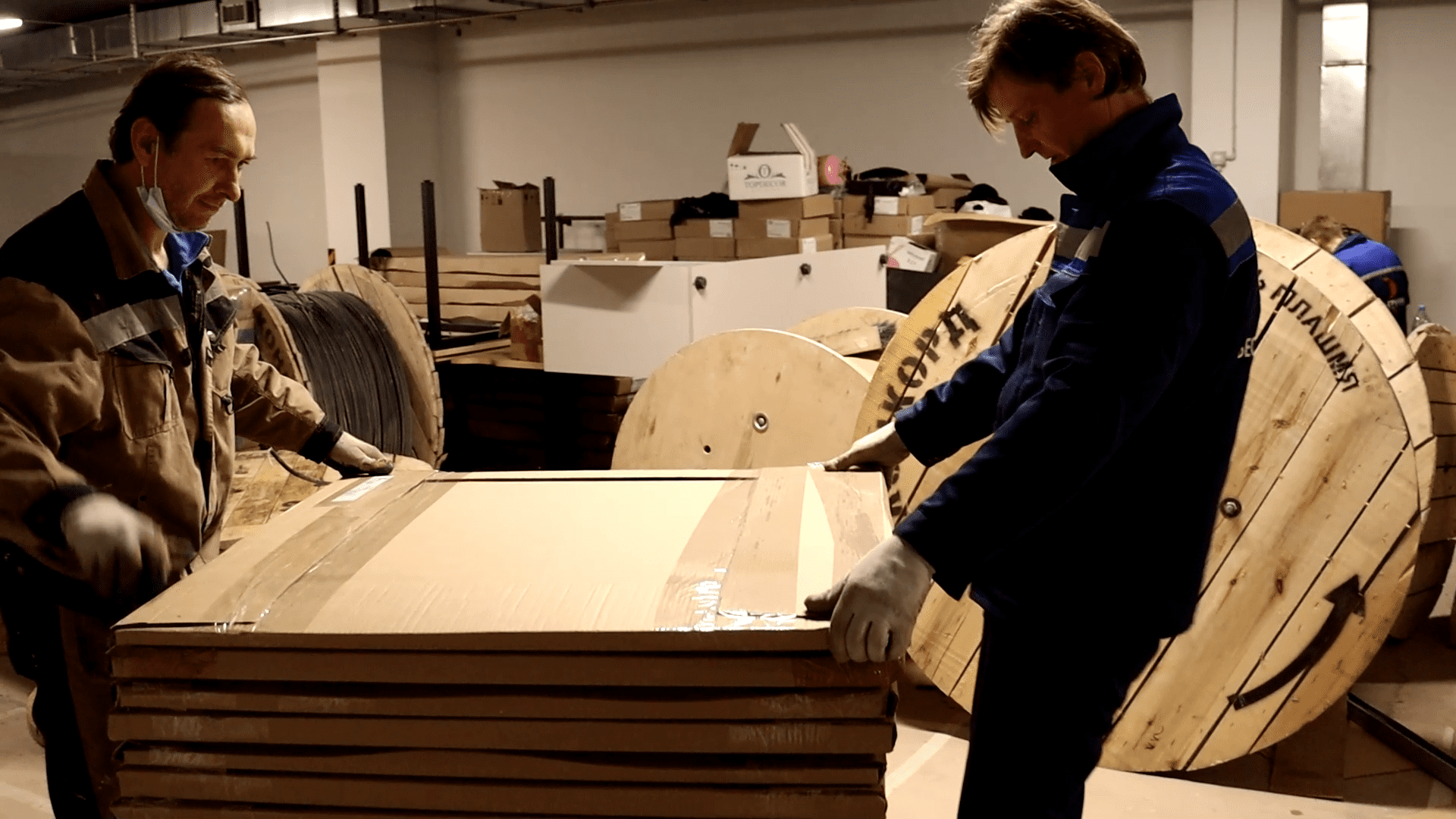 2. Упаковка имущества. Сначала в коробки убираются мелкие и средние по размеру предметы: книги, документы, канцелярия. Следом – хрупкие изделия (стеклянные витрины, оборудование). Все коробки маркируются. Последними – оргтехника и мебель, которая разбирается (с помощью наших сотрудников или силами заказчика). Этим занимаются опытные упаковщики.